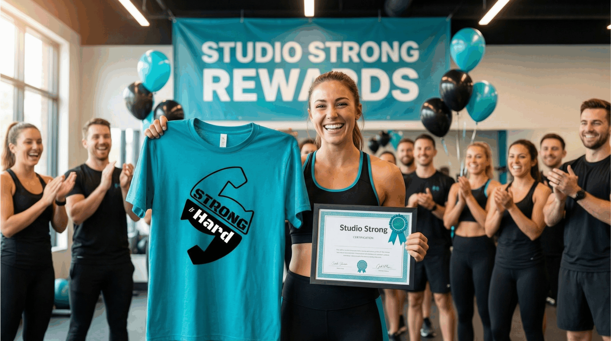 Participants who complete all 42 days AND post to social media daily while tagging Insta @studiostrongfitgym or Facebook @studiostrong earn an $80 Studio Strong Credit plus an Exclusive Finisher Shirt. This higher tier recognizes those who contribute to community building and program visibility.